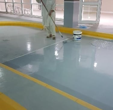 فارس القمم للمقاولات – تنفيذ دهان الايبوكسي للمستودعات و المواقف و المحطات و البناشر بدقه عاليه و ضمان على العمل بافضل المواد على حسب الطلب اتصل الآن: 050903781
